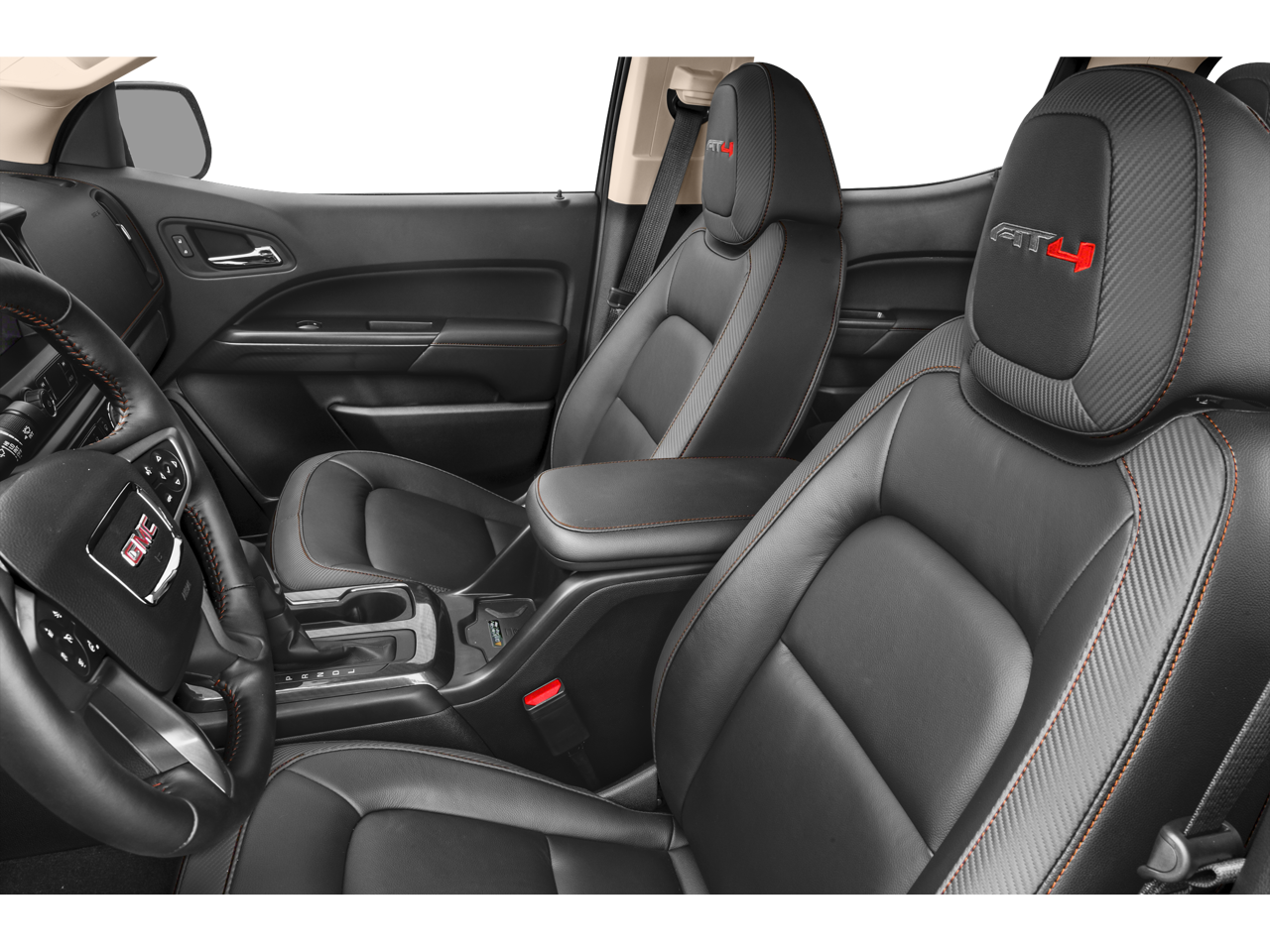 Inside, the Canyon AT4 w/Leather offers a premium and well-appointed cabin, with features like the 8-inch GMC Infotainment System with navigation, a Bose premium audio system, and wireless charging for your compatible devices. The leather-appointed seating provides exceptional comfort and style, while the heated steering wheel and power-adjustable front seats add to the overall driving experience.